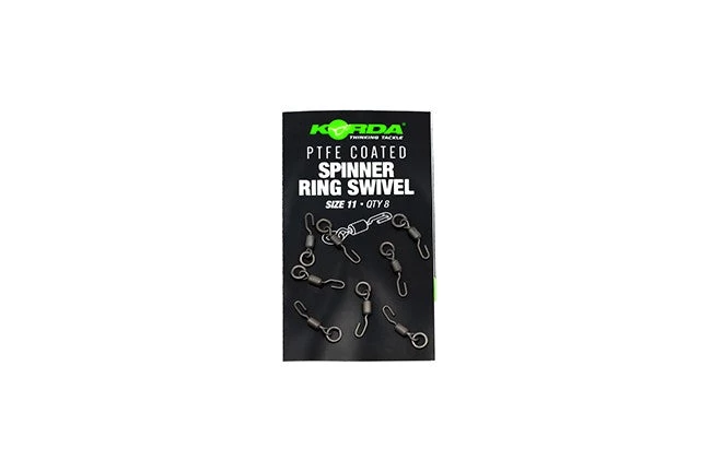 The Korda Size 11 PTFE COATED SPINNER RING SWIVEL has been purposefully designed for creating the popular Spinner/Ronnie Rig. It uses a Polytetrafluoroethylene (PTFE) coating which is a synthetic polymer and has one of the lowest coefficients of friction of any solid. This makes it the perfect coating for our swivels as it reduces friction between the barrel and swivel eye, allowing them to rotate freely, this in turn will improve the hooking efficiency of your Spinner Rig. Having the most efficient rotation will increase your rigs mechanics and help them to perform at their optimum level.