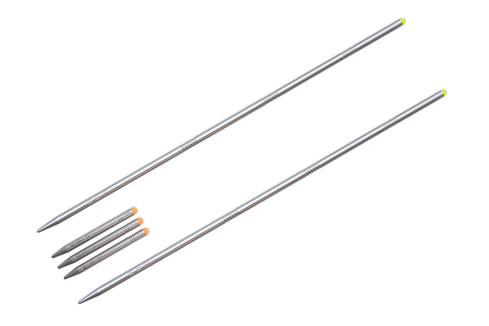 Made in ESP’s own Oxford factory to exacting standards using high-grade 8mm diameter stainless steel, the pair of 46cm long wrap sticks are accompanied by three short ‘spot markers’ for precise distance mapping and help the angler to get the rod clipped up on the exact spot each cast. Each of the spot markers is numerically engraved to indicate rod 1, 2 & 3.
