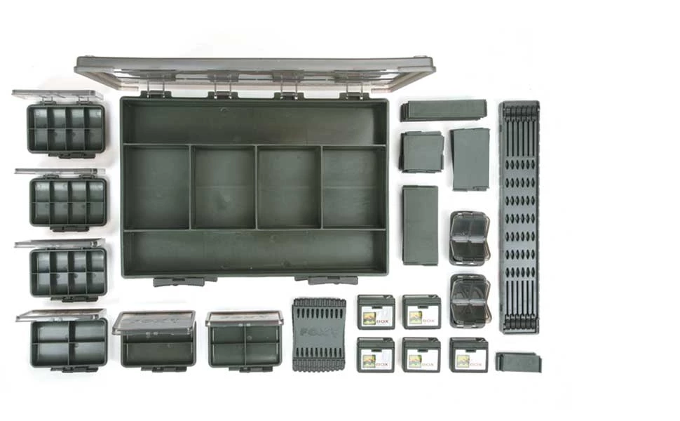 The F-Box Deluxe Set is fully fitted with integral storage units which are designed to accommodate a multitude of carp fishing tackle items. The box itself is based on a unique double sided design which maximises storage space and allows easy access to tackle components.