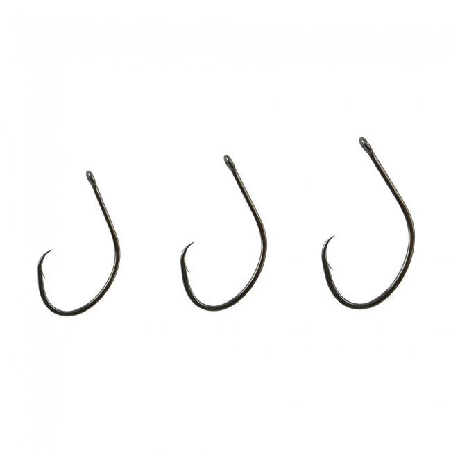 Formed like a circle hook, with a wide open bend and a straight eye, for perfect bait presentation when using the dropshot method with extra long soft plastic baits like worms, slugs and finesse shads.